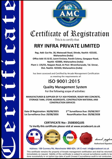 Our Plant 2 at Adgaon, Nashik, is a high-capacity Ready-Mix Concrete (RMC) facility with a production capacity of 75 cubic meters per hour. Designed for efficiency and quality, this plant caters to major infrastructure and commercial projects, delivering superior-grade concrete with precision batching, modern equipment, and prompt logistics support.